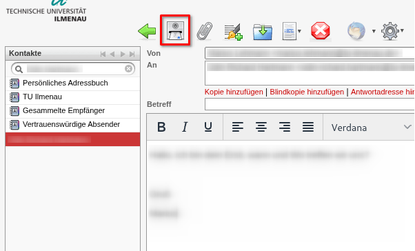 Die richtige Adresse sollte jetzt automatisch im "An" Feld eingetragen sein.