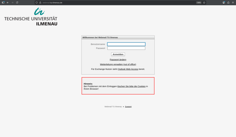 1. Öffne webmail.tu-ilmenau.de und melde dich mit deinem TU-Ilmenau Account an.